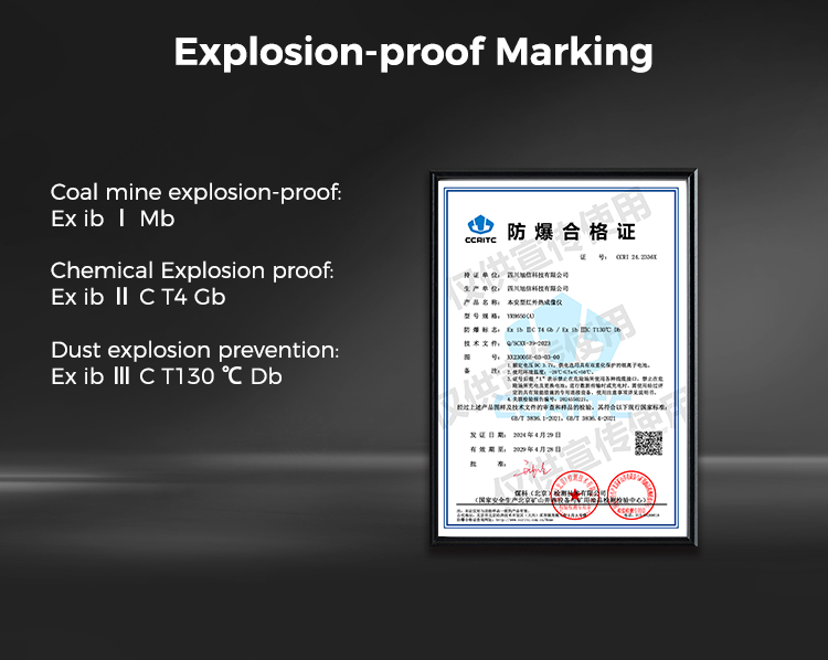 Intrinsically safe explosion-proof is adopted. By limiting circuit energy, such as strictly controlling voltage, current and power, it ensures that the energy of electric sparks or thermal effects generated by the equipment is lower than the ignition energy of flammable and explosive gases and dust under normal operation or fault conditions, thereby avoiding the risk of explosion.