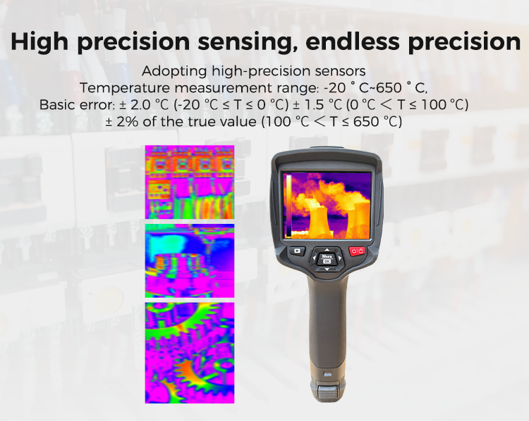 The infrared resolution can be selected as 160× 120, 384× 288, or 640× 512 pixels. The temperature measurement range is from -20 ℃ to 650℃, accurately presenting thermal images and precisely measuring temperature.